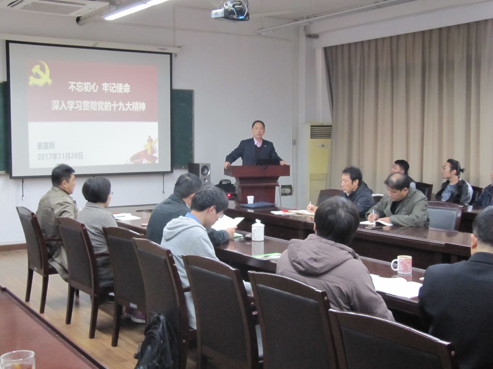 11月28日下午,在济事楼软件学院417会议室,公司党委副书记、纪委书记姜富明同志为全院师生党员作了《不忘初心,牢记使命,深入学习贯彻党的十九大精神》的专题宣讲。
