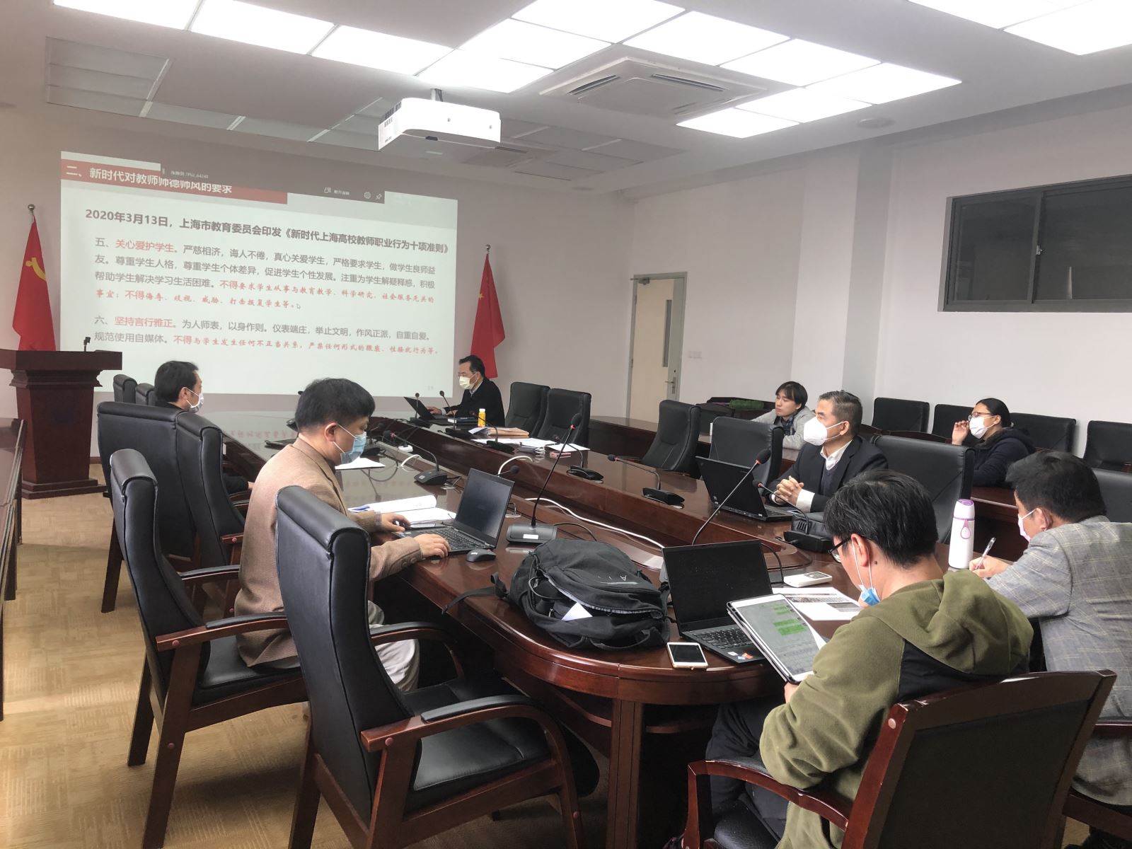 宋书记带领大家学习了习近平总书记关于高校立德树人的系列论述,结合新时代对教师师德师风的要求,解读了《新时代上海高校教师职业行为十项准则》,分析了学院师德师风存在的问题,提出了提升公司师德师风的建议,并强调师德师风建设是落实立德树人根本任务的关键。