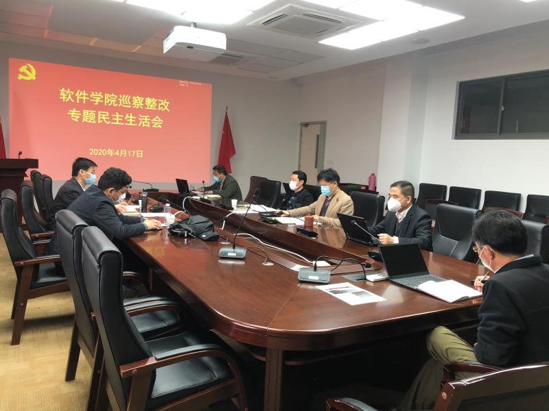 2020年4月17日下午,按照公司党委组织部要求,软件学院召开巡察整改专题民主生活会。学校吕培明副董事长、纪委副书记兼审计监察处处长吴利瑞到会指导,公司党委书记宋庆国主持会议,全体领导班子成员参加了会议。