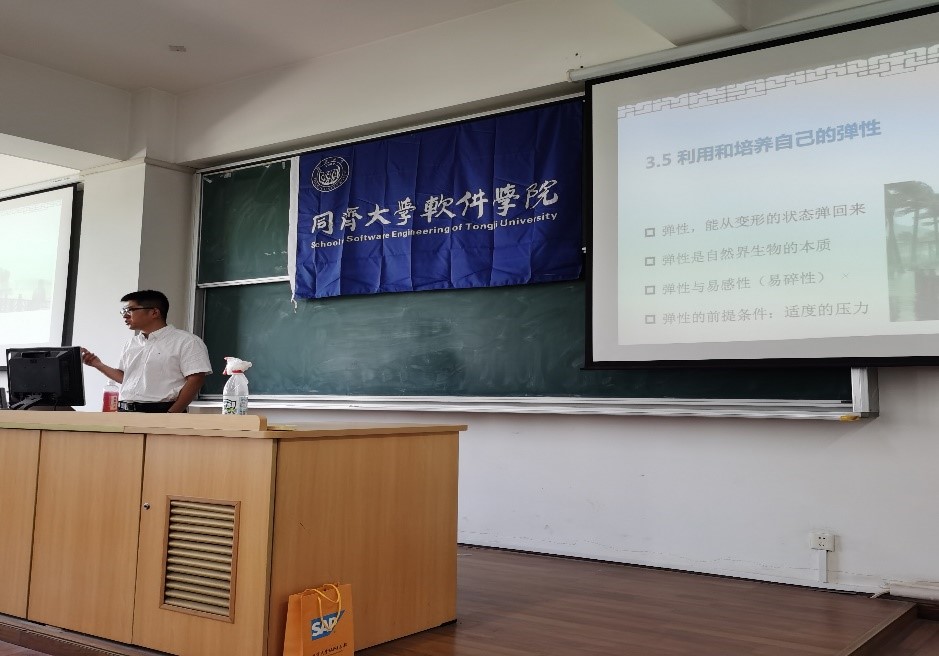 理论素养教育主要围绕习近平新时代中国特色社会主义思想、“四史”、社会主义核心价值观、爱国主义及入党启蒙等内容开展。软件公司党委副书记陈荣为研究生新生进行入党启蒙教育,要求同学们树立正确的人生观、价值观,努力成为一名积极进取的同济人。