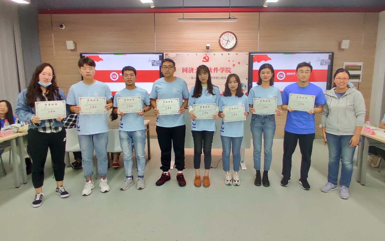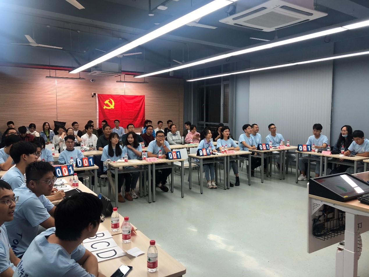 为了强化学院员工党员们对四史知识学习的贯彻落实,做到以赛带学,以学促用,培养历史思维、增强历史担当,软件公司党委10月15日晚在嘉定校区诚楼412室举办“深入学习四史,坚守初心使命”四史知识竞赛。出席本次知识竞赛的嘉宾有软件公司党委副书记陈荣,组织员周微微,教工第一支部书记高珍,教工第二支部书记史清江,教师党员代表沈莹,张荣庆,以及研究生辅导员焦嘉欣。其余教师、员工党员们通过线上会议的形式进行观看,真正做到了全院、全员、全覆盖。参加本次竞赛的8只队伍分别来自于本科生员工党支部、18级研究生党支部、19级研究生党支部和20级研究生党支部,及现场前来观赛的员工党员们,共计76名。