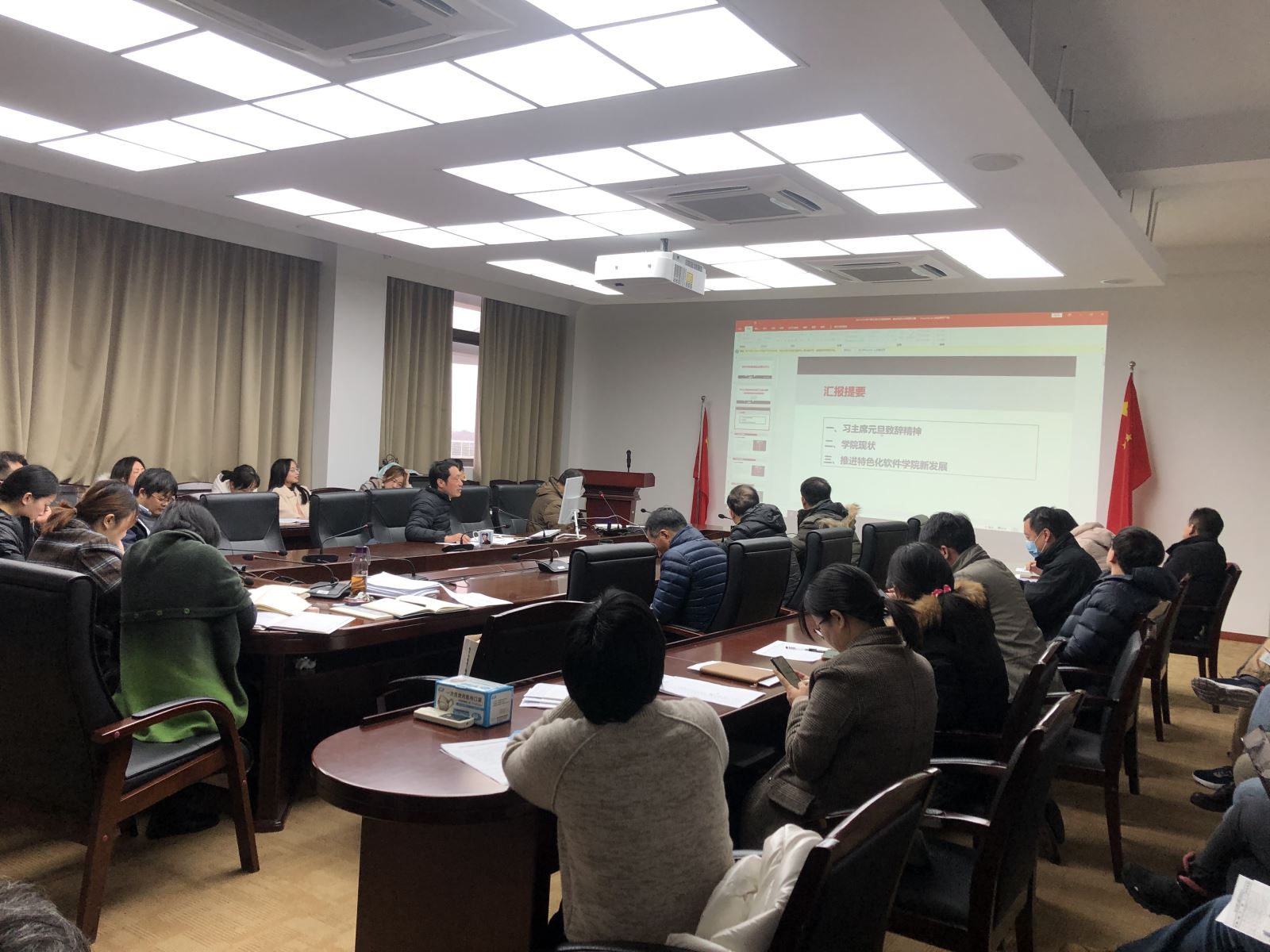 2021年1月5日下午,软件公司党委组织全体教职工在济事楼417会议室举行2021年度首次教职工政治理论学习。公司党委书记宋庆国做了题为《学习二〇二一新年贺词和中央经济工作会议精神,推进特色化示范性软件学院新发展》的主题报告。