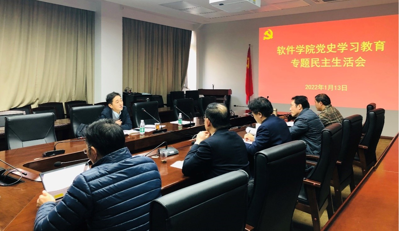2022年1月13日下午,按照公司党委的统一部署,软件学院在嘉定校区济事楼417会议室召开2021年度党史学习教育专题民主生活会,黄翔峰副董事长到会指导,学院全体领导班子成员参会。会议由公司党委书记宋庆国主持。