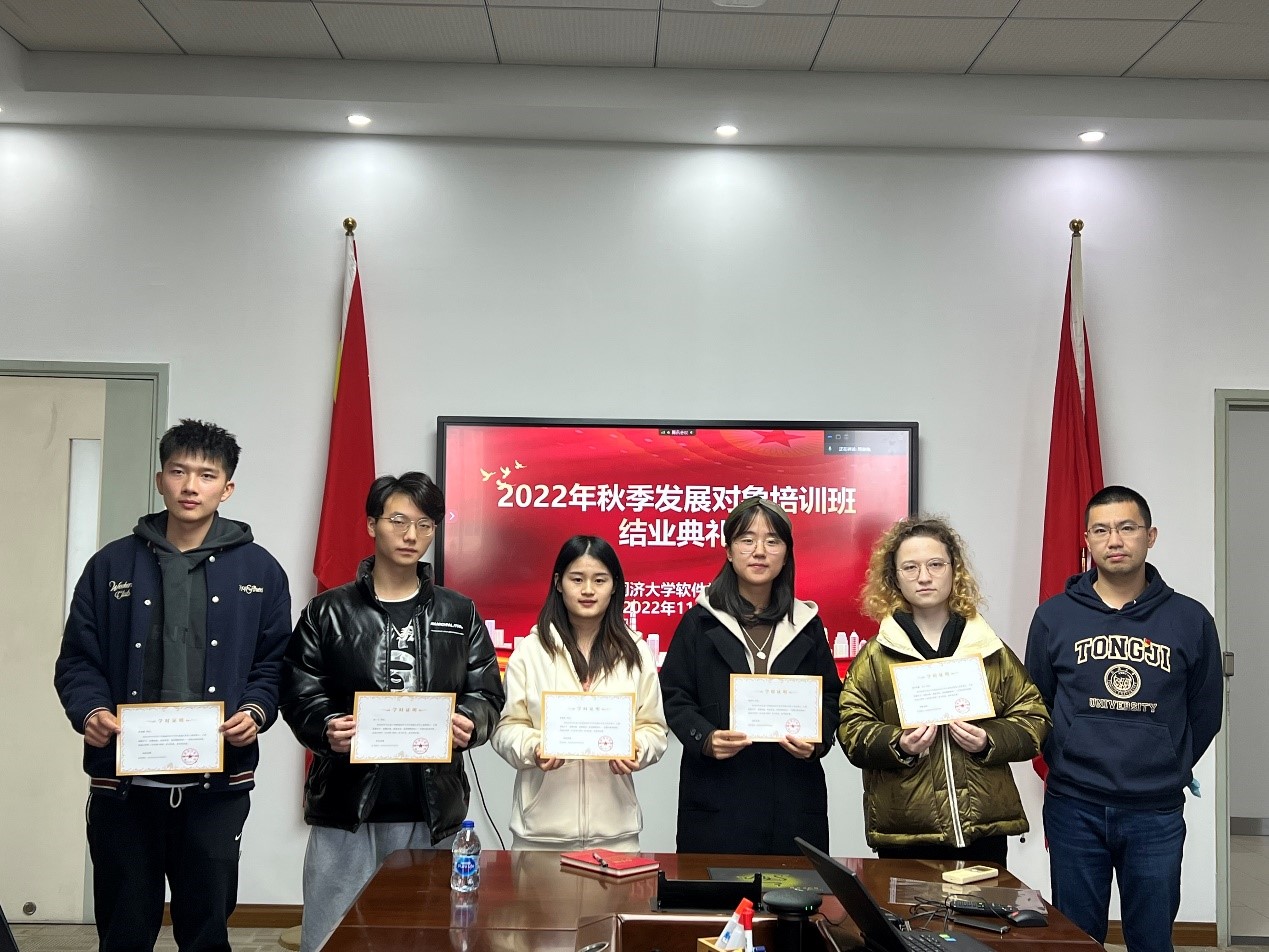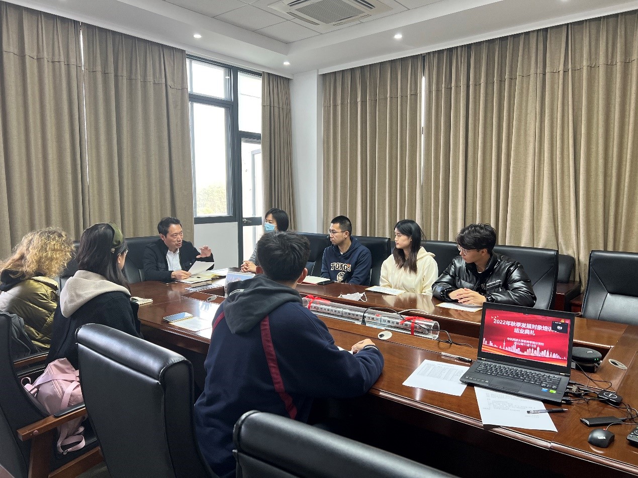 周微微同志介绍本次发展对象培训班培训情况。本次发展对象培训班于2022年10月27日开班,为期两周,培训分为课程学习、主题研讨、思想汇报撰写和在线考试四个环节。参加发展对象培训班同学全部按照要求通过了考核,顺利结业。随后,培训班同学进行学习汇报,均表示在此次培训中获益颇丰,在今后学习生活工作中严格要求自己,早日成为一名合格的共产党员。接着,员工第三党支部书记陈璞皎同志为现场参会的培训班同学颁发了结业证书。