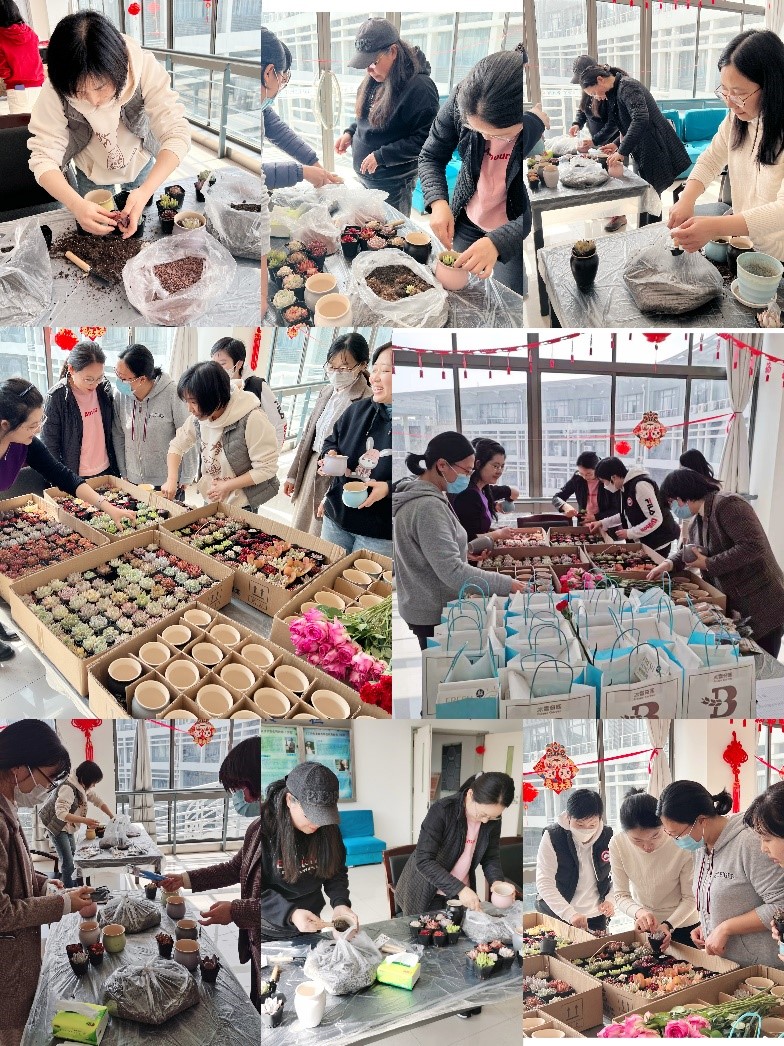 在第113个国际妇女节来临之际,软件学院工会于3月7日中午组织女性教职工在济事楼4楼中厅开展“指间造趣”女神节多肉植物DIY活动。学院工会主席陈荣副书记出席活动。