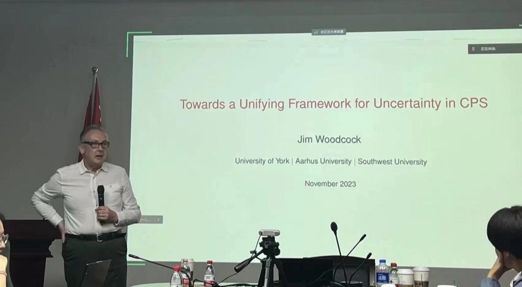 2023年10月30日下午,应张苗苗研究员的邀请,约克大学教授、英国皇家工程院院士Jim Woodcock教授到访软件学院,在济事楼417会议室开展题为“Towards a Unifying Framework for Uncertainty in CPS”的学术报告。本次讲坛由张苗苗研究员主持。