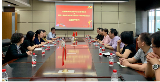 为深入学习贯彻党的十九大精神,进一步落实新时代党建工作的新要求,拓展校企合作新领域,2019年6月25日上午,交通银行软件开发中心党总支与计算机联合党总支联建联学签约仪式在嘉定校区智信馆305室举行。公司党委书记童学锋、党委副书记董变林、计算机科学与技术系党政班子成员以及教工支部书记代表,交通银行软件开发中心(上海)副总经理孙莉、综合管理部高级经理刘衍红、开发六部高级经理虞笑韵、开发六部副高级经理童蕙等党员代表出席会议。