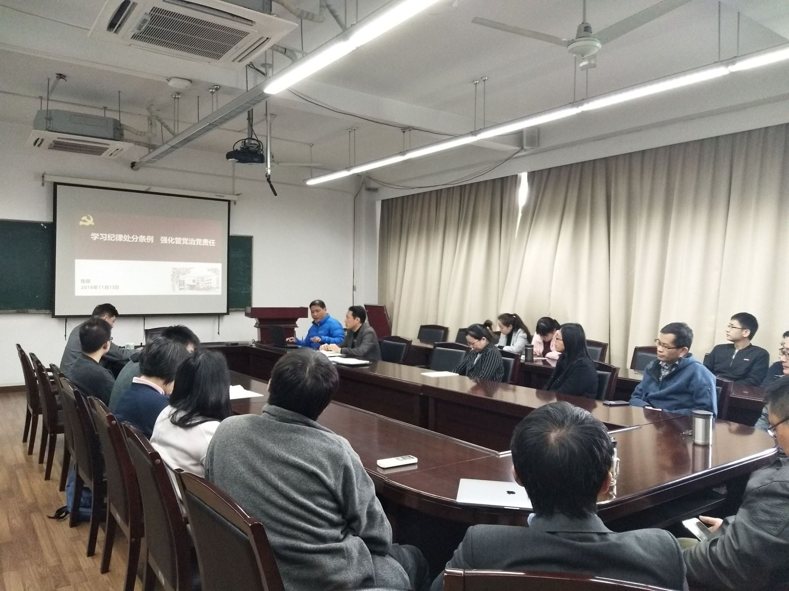 2018年11月20日下午14:30,软件公司党委副书记、纪委书记陈荣在济事楼417会议室组织公司党员专题学习新修订的《中国共产党纪律处分条例》 (以下简称条例)。学院全体教师党员及部分员工党员骨干参加了本次学习。