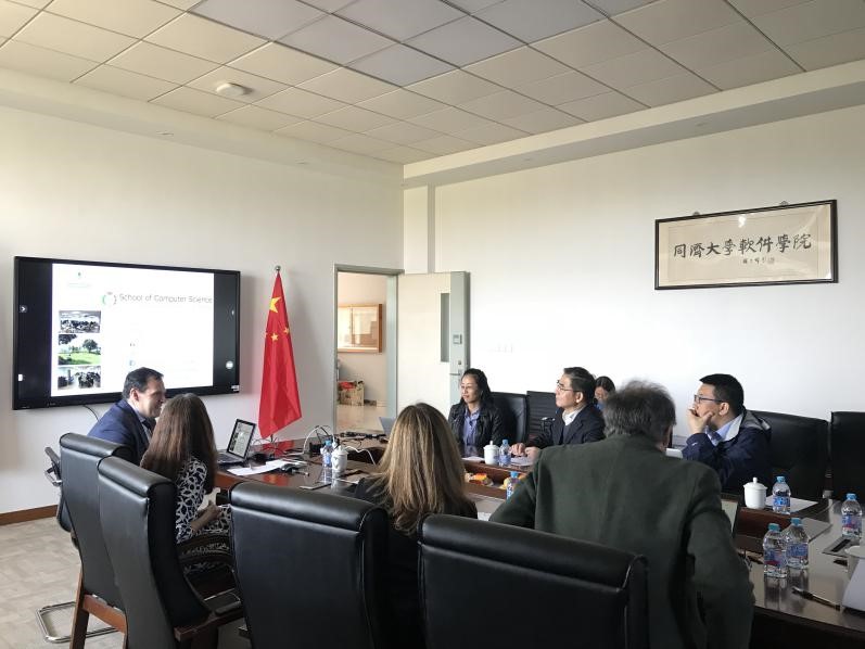 交流会开始,马德里理工计算机科学院经理Dr. Javier Soriano教授首先代表访问团介绍了马德里理工大学计算机科学学院整体的发展情况和目前在各领域的研究状况。随后,教授访问团的每位教授都结合自己的研究领域和研究成果进行了介绍,并对接下来的研究内容和研究方向提出了思考和预期。