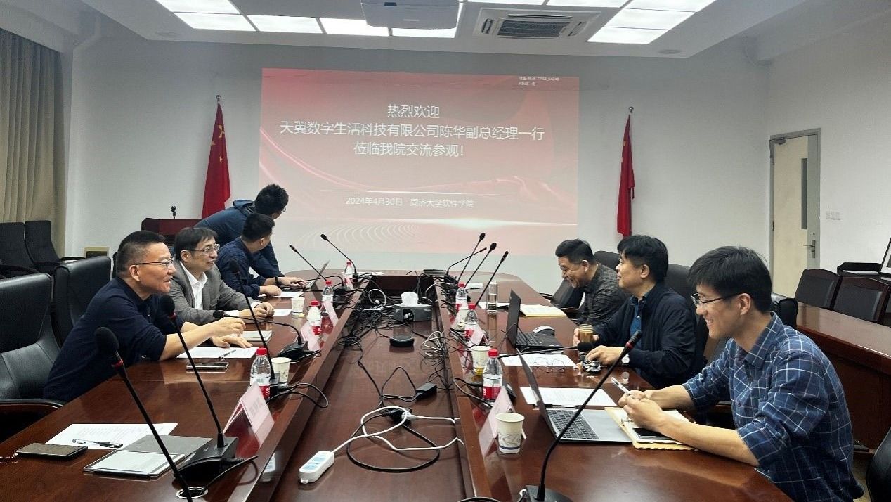 4月30日,天翼数字生活科技有限公司(以下简称天翼公司)副总经理陈华一行来访,与软件学院相关领域教师围绕产学研和校企合作进行交流研讨,软件学院经理赵生捷教授出席交流会议。